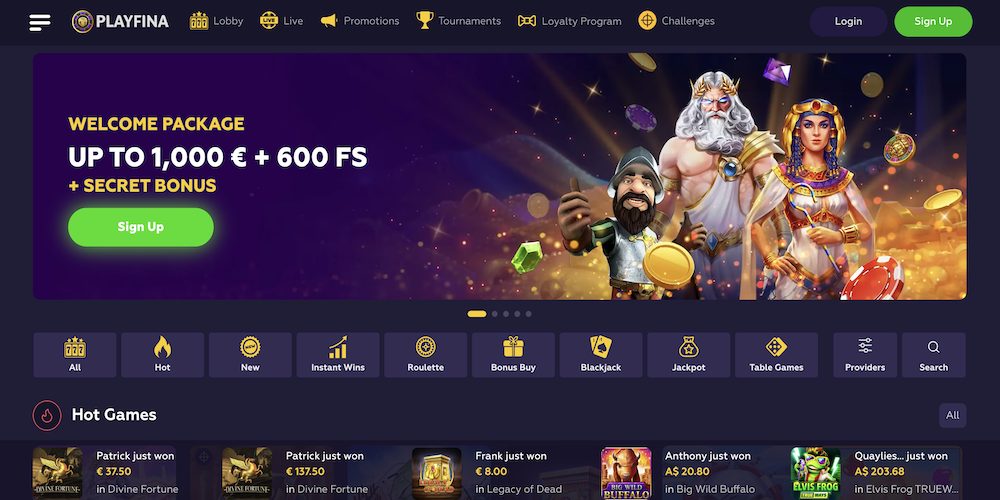 More than 11,000 slots, all varieties of blackjack, dozens of roulette games, craps, video poker, and other games are available to you at Playfina casino online Exploring the Thrills - An Extensive Evaluation of Playfina Casino! Play the Best Online Casino Games at Playfina ✓ Try Slots, Blackjack, Roulette, Craps and Video Poker with Huge Bonuses. Playfina Casino How to Start Up to 1000€ + 200 FS + Secret Bonus... Playfina Casino - Bonus Codes – 50 Free Spins!